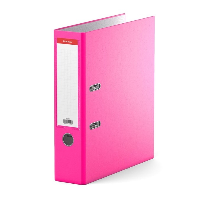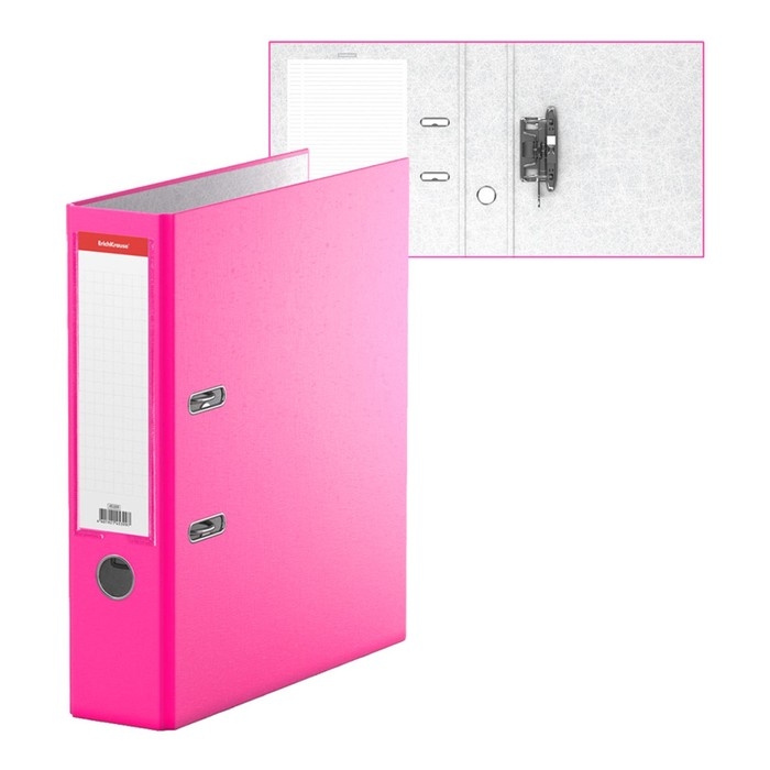 Папка-регистратор А4, 70мм Neon, собранная, розовая, пластиковый карман, картон 2мм, вместимость 450 листов