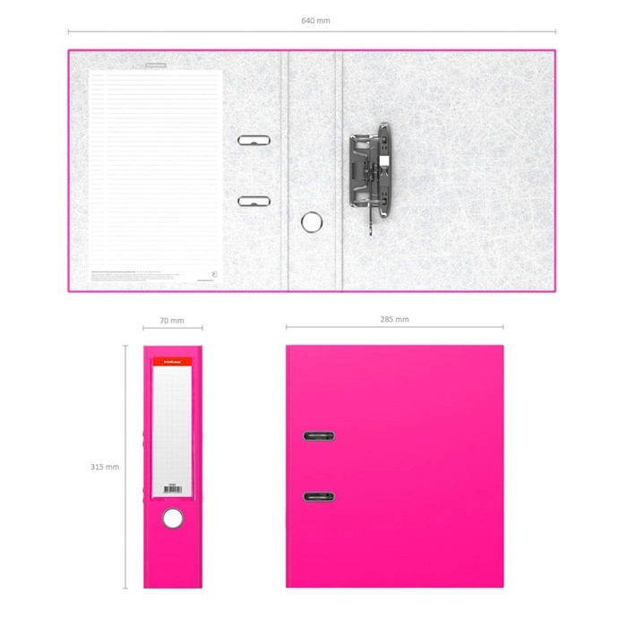 - Корешок папки шириной 70 мм оснащен прозрачным пластиковым карманом со сменной этикеткой для маркировки. Для удобства использования на корешке имеется металлическое кольцо для захвата.
