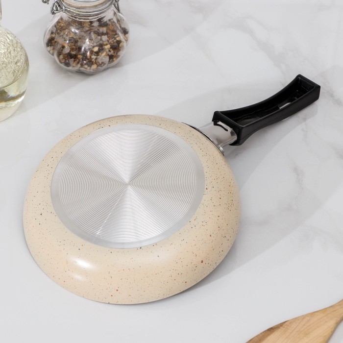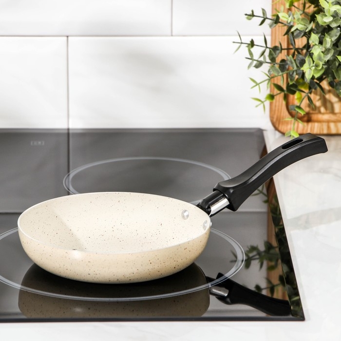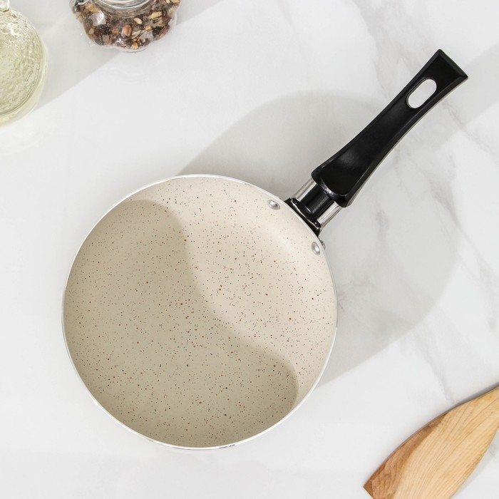Сковорода «Стоун», d=15,5 см, пластиковая ручка, антипригарное покрытие, цвет бежевый