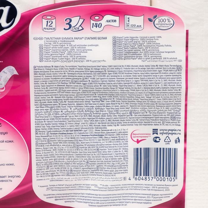 Туалетная бумага белая «Papia» 3 слоя, 12 рулонов