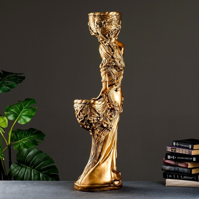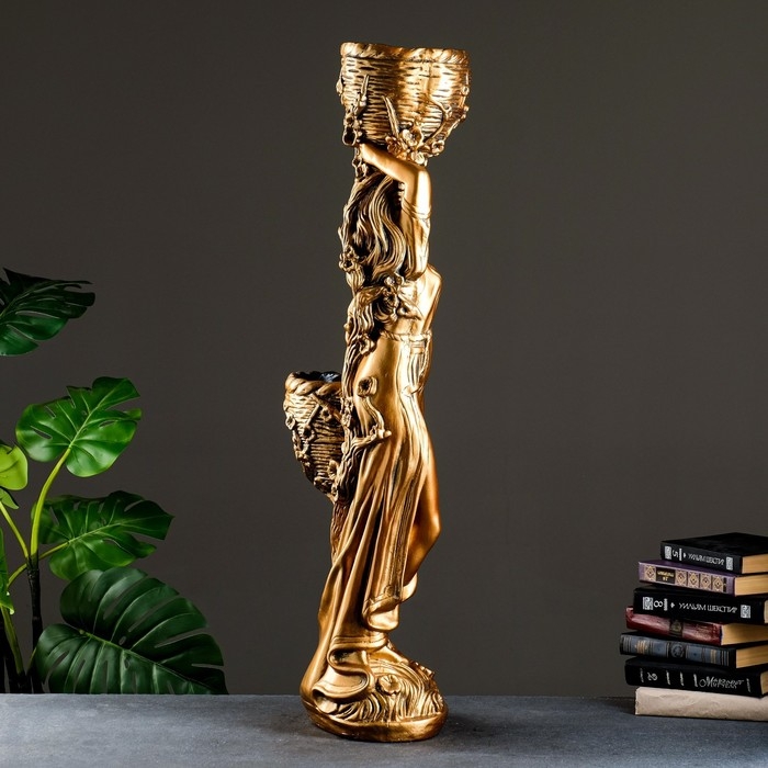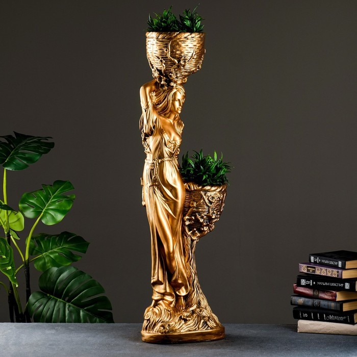 Фигура "Девушка с двумя кашпо", 1,2 л/0,9 л/21х30х96см бронза