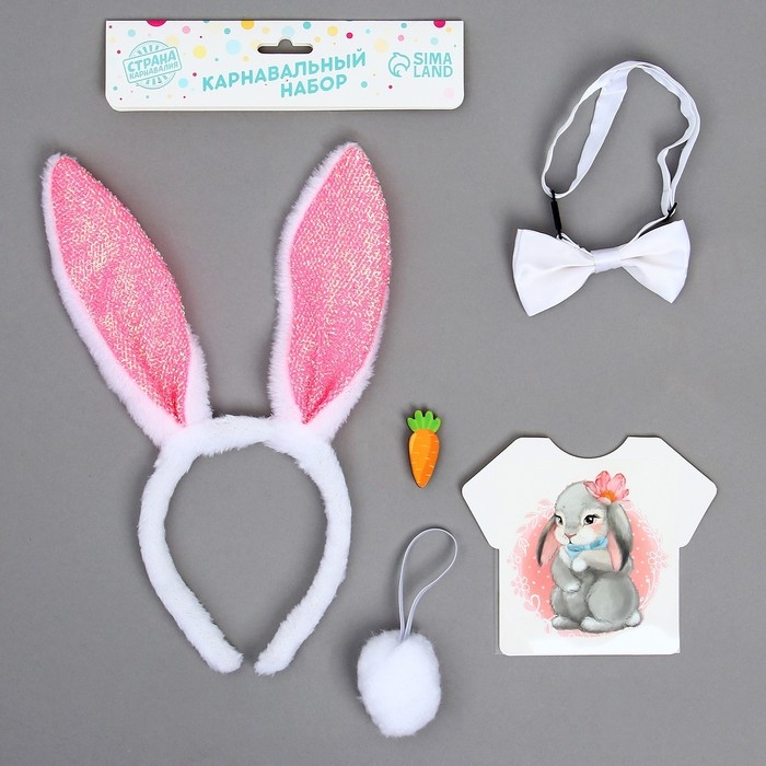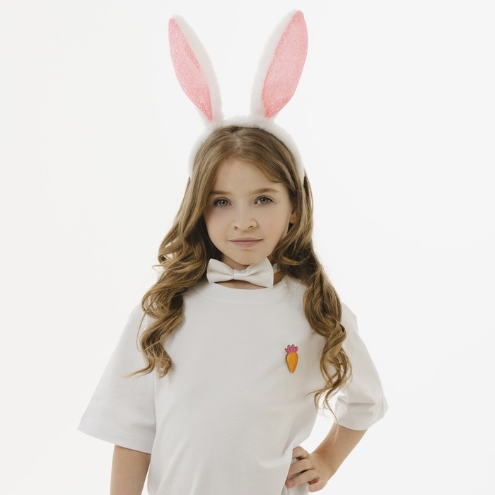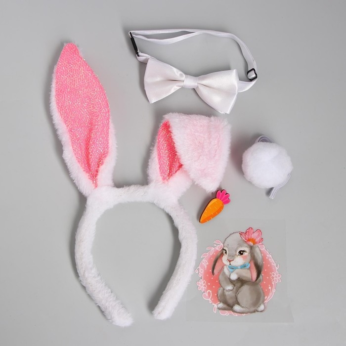 Карнавальный костюм «Заюшка», ободок - ушки, хвостик, бабочка, термонаклейка
