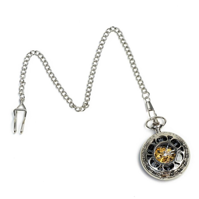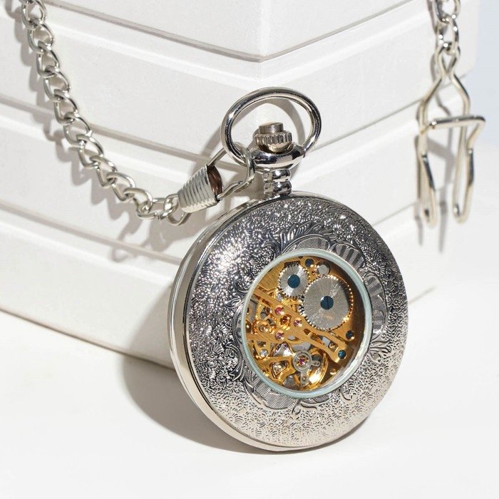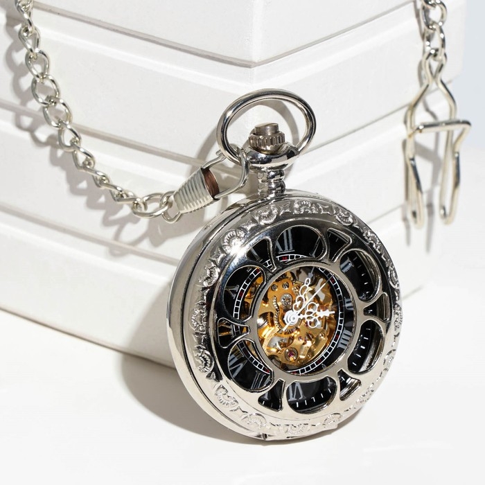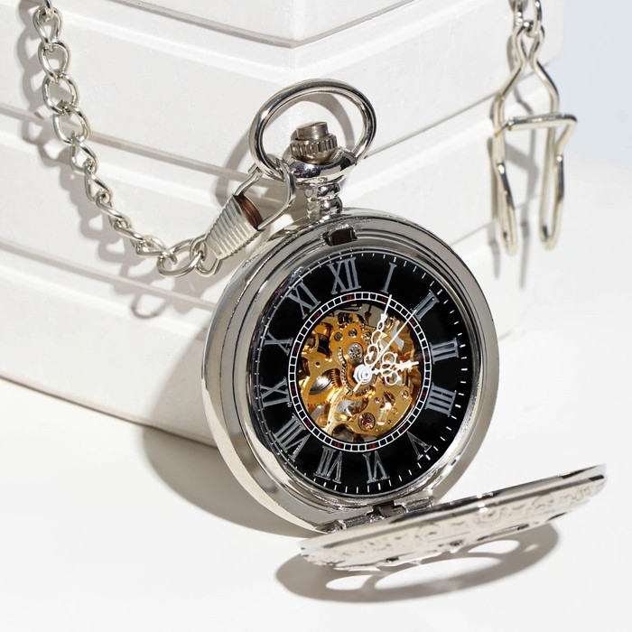 Часы карманные механические "Скелетон", d циферблата-4 см, 5.5 х 4.5 см