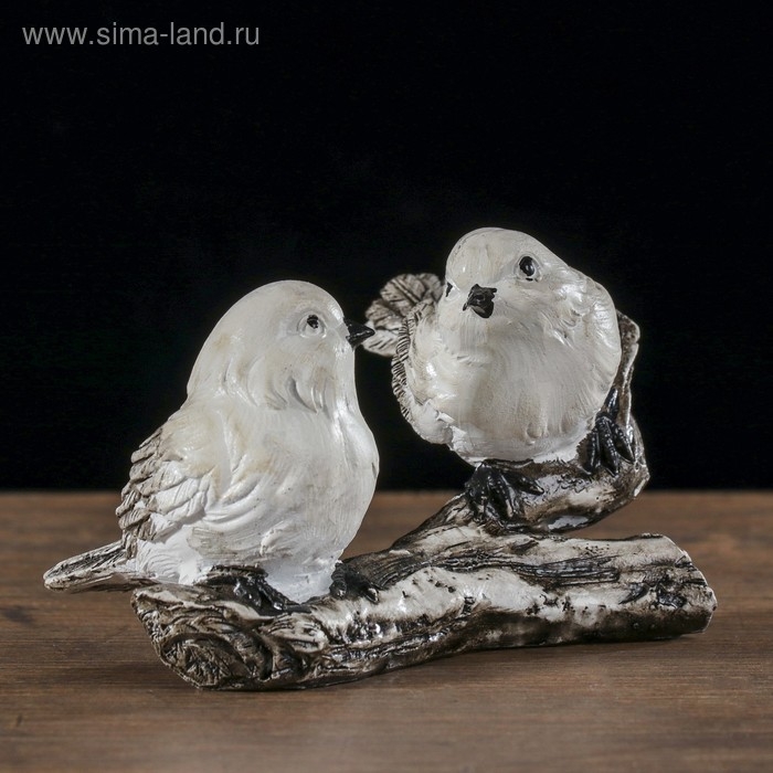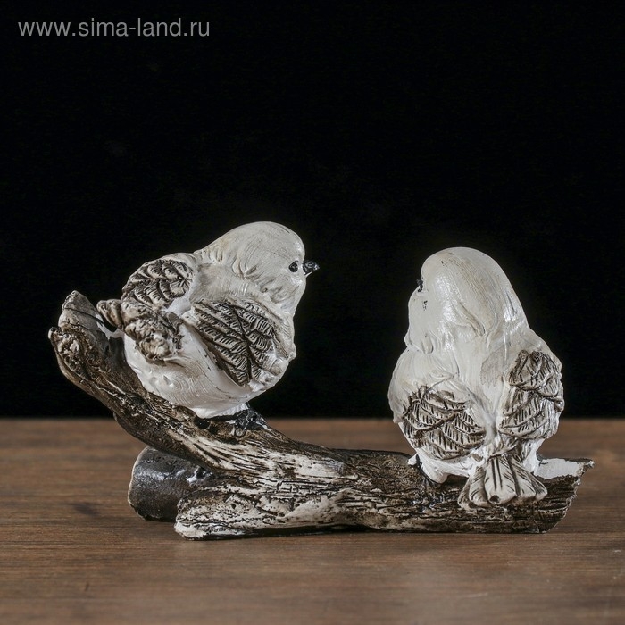 Сувенир полистоун "Два белых воробышка на веточке" 6,5х11х6,5 см
