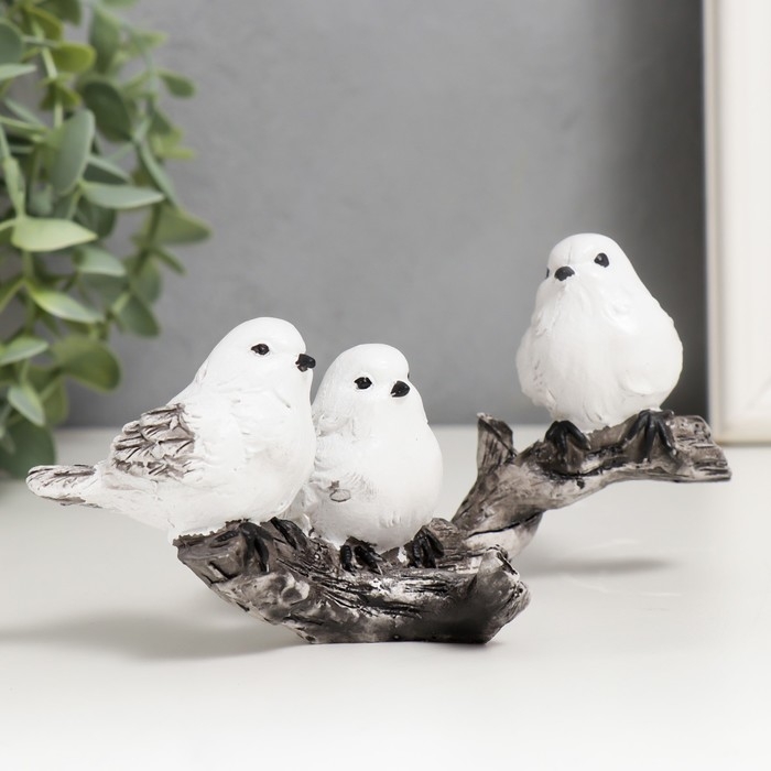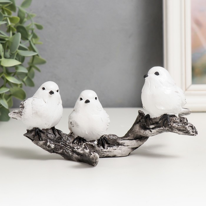 Сувенир полистоун "Три белых воробышка на веточке" 7,5х17х8,5 см
