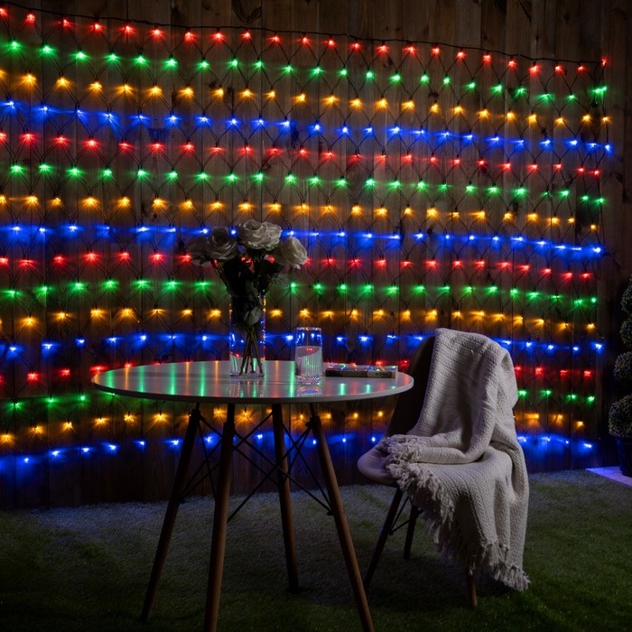 Гирлянда «Сеть» 2 х 3 м, IP44, УМС, тёмная нить, 384 LED, свечение мульти, 220 В
