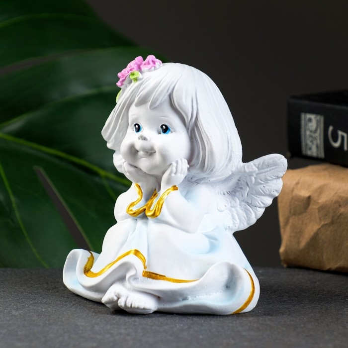Фигура "Малышка-ангел с цветами в волосах" 7х8х9см