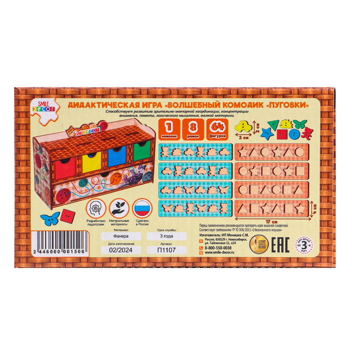 Волшебный комодик «Пуговки», 64 пуговки