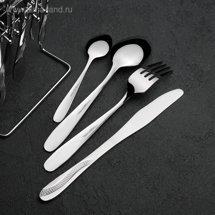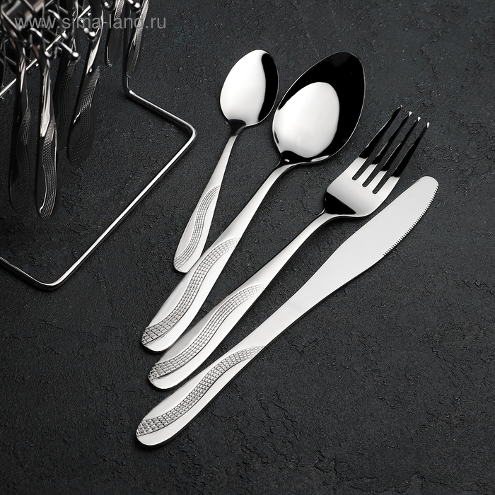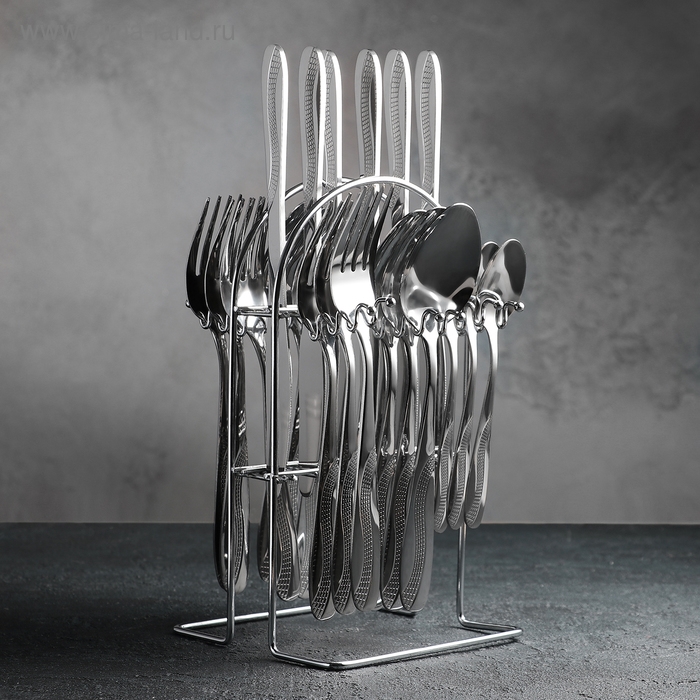 Набор столовых приборов из нержавеющей стали «Водопад», 24 предмета, на подставке, цвет серебряный