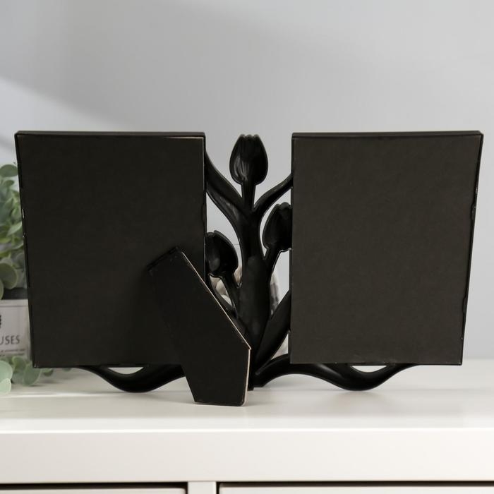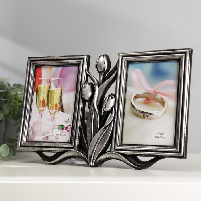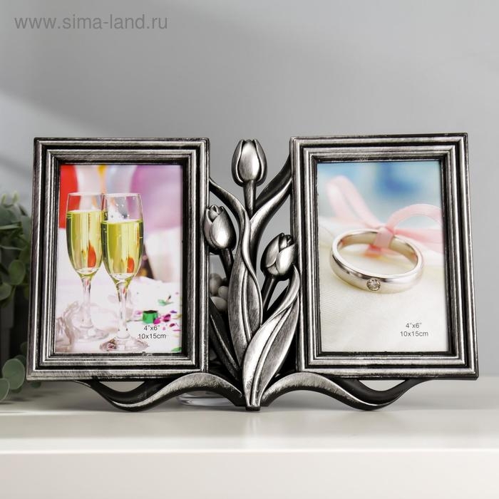 Фоторамка пластик на 2 фото 10х15 см "Тюльпаны" тёмное серебро 20х31 см