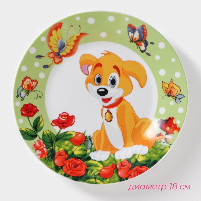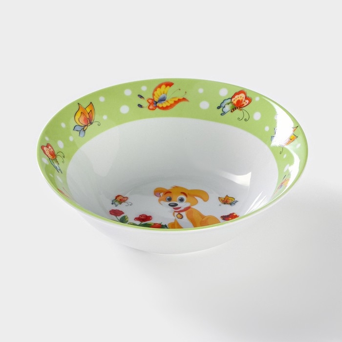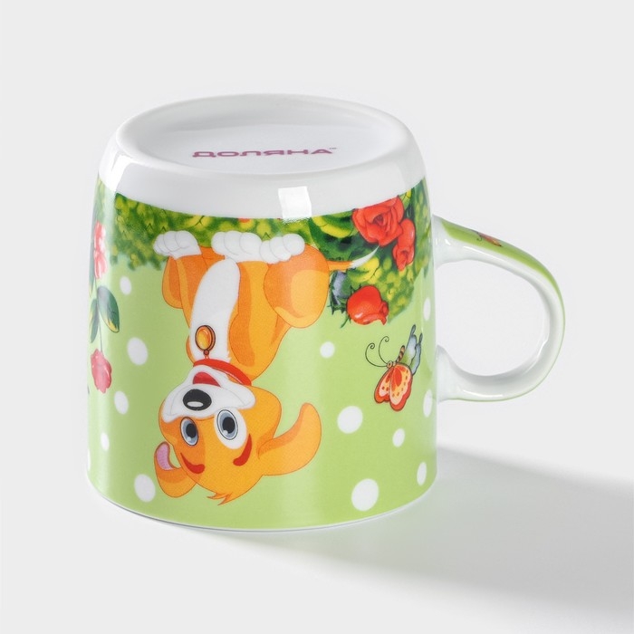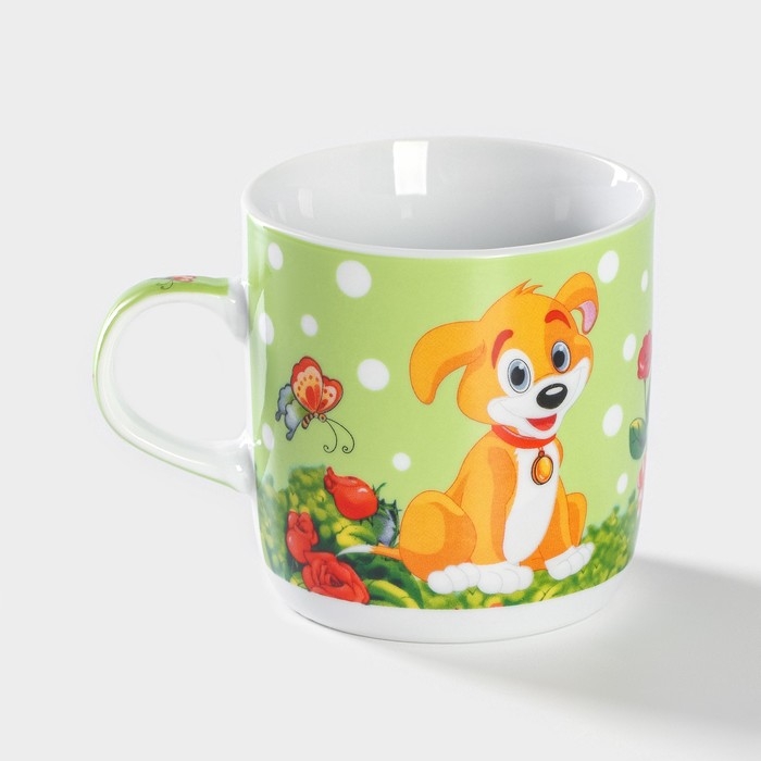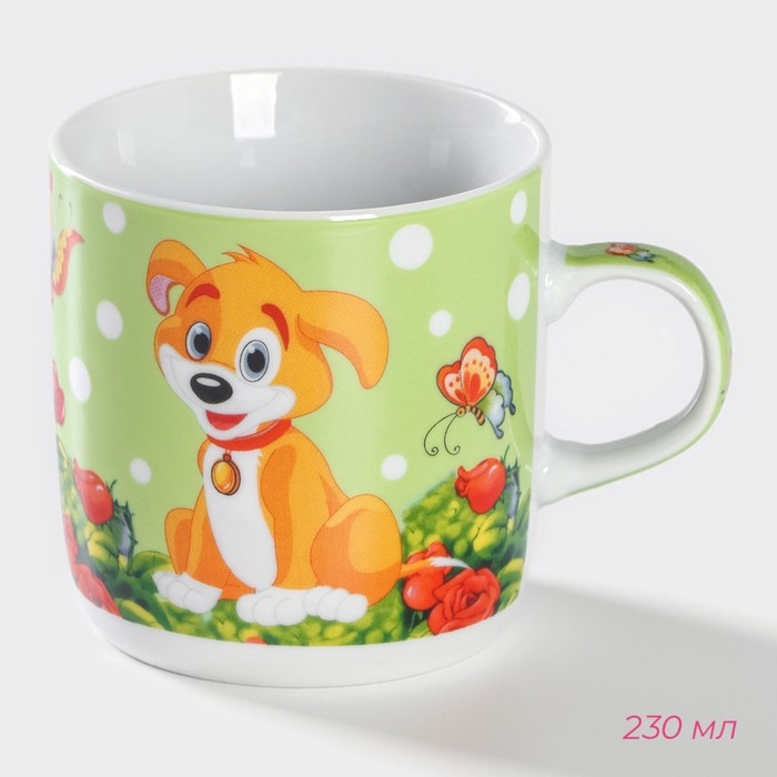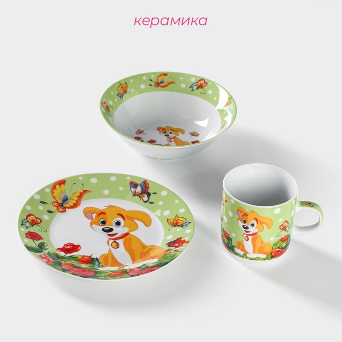 Набор детской посуды из керамики Доляна «Щенок», 3 предмета: кружка 230 мл, миска 400 мл, тарелка d=18 см
