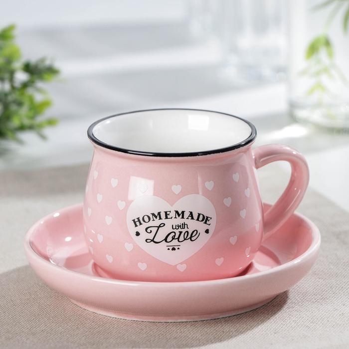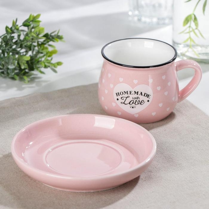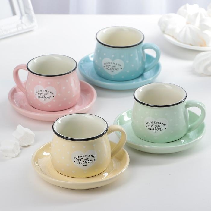 Кофейная пара керамическая «Уютный дом», 2 предмета: чашка 180 мл, блюдце d=12,5 см, цвет МИКС