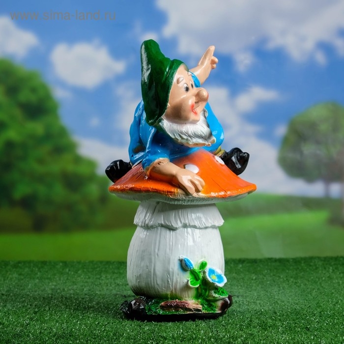 Садовая фигура "Гном на мухоморе на животе" 37х22см,
