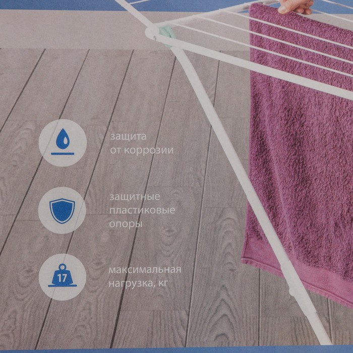 Сушилка для белья напольная складная, рабочая длина 20 м, цвет белый