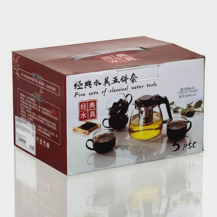 Набор чайный состоит из четырёх кружек 150 мл и заварочного стеклянного чайника с металлическим ситом объёмом 900 мл. Подходит для заваривания всех сортов чая и травяных смесей. Легко моется, не впитывает посторонние запахи. Отлично впишется в дизайн любой кухни.