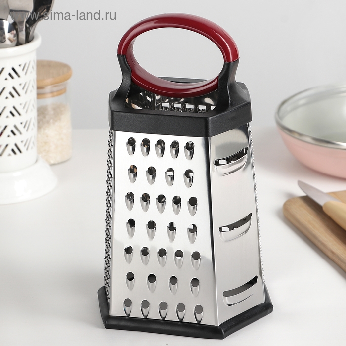 Тёрка шестигранная Доляна «Нео», 14×12×22 см, прорезиненное дно, цвет чёрный, красный