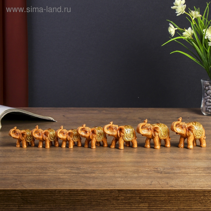 Сувенир полистоун "Семь слонов" под дерево набор 7 шт h-7;6,5;5,5;5;4,5 см