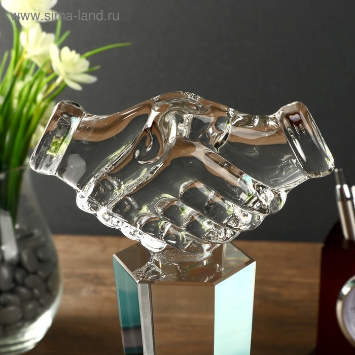 Сувенир стекло "Стела наградная - Рукопожатие" 26 см