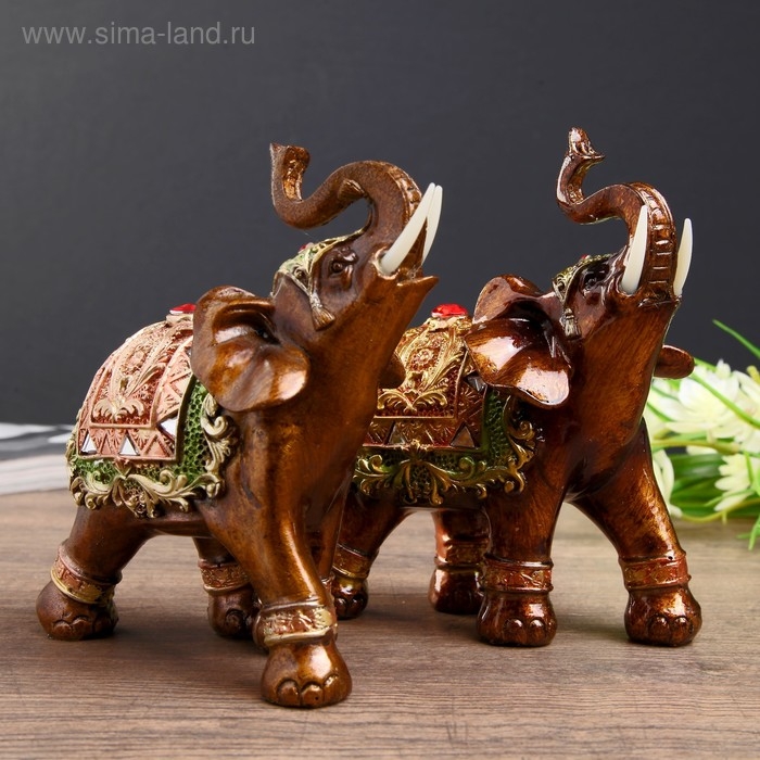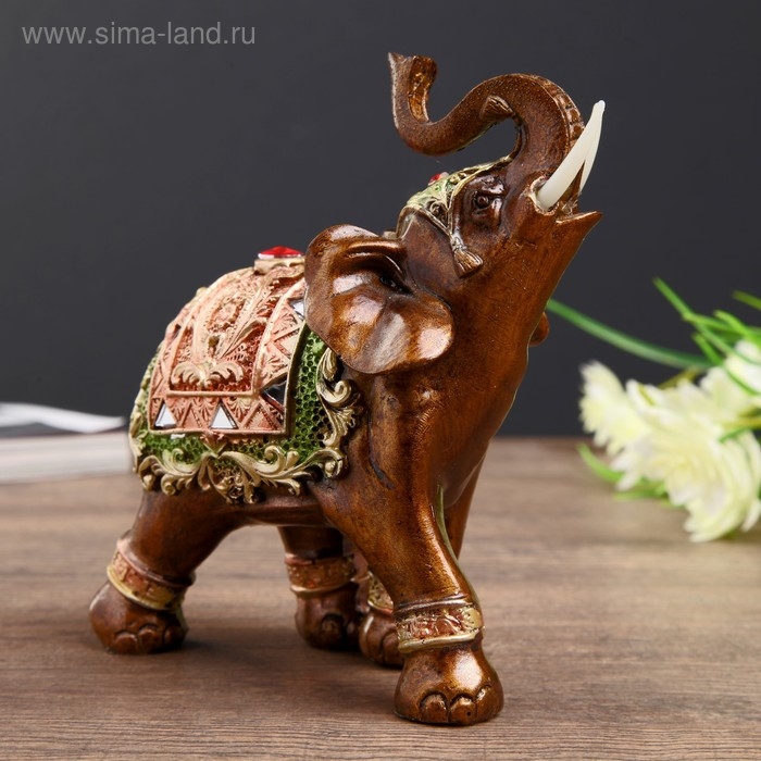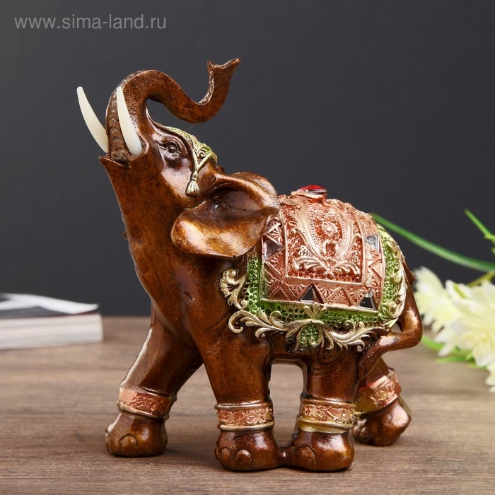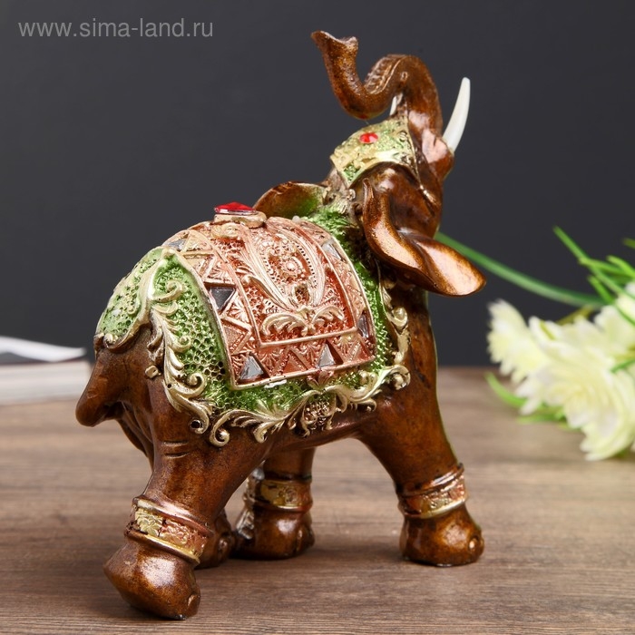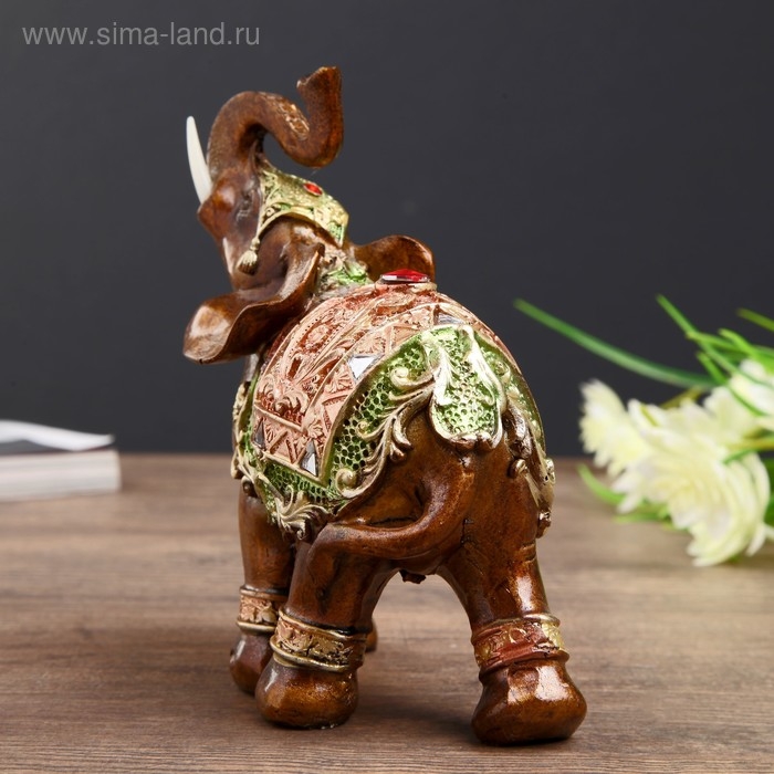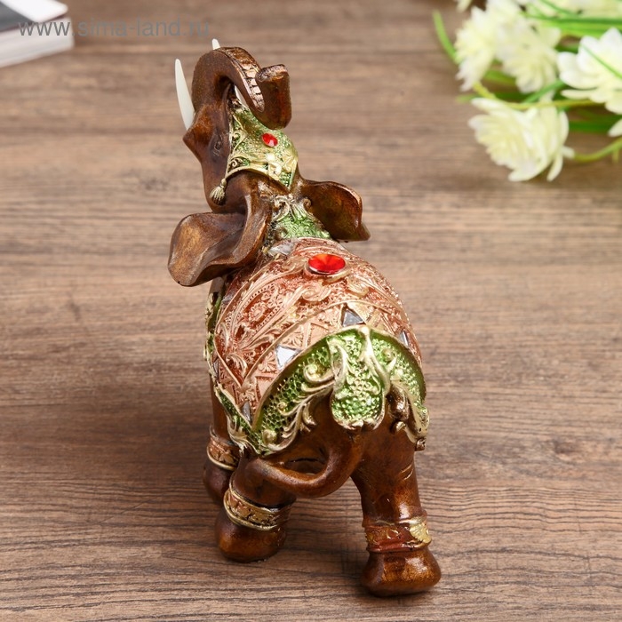 Сувенир полистоун "Карамельный слон в красно-золотой попоне с рубином" МИКС 14х11,5х6 см