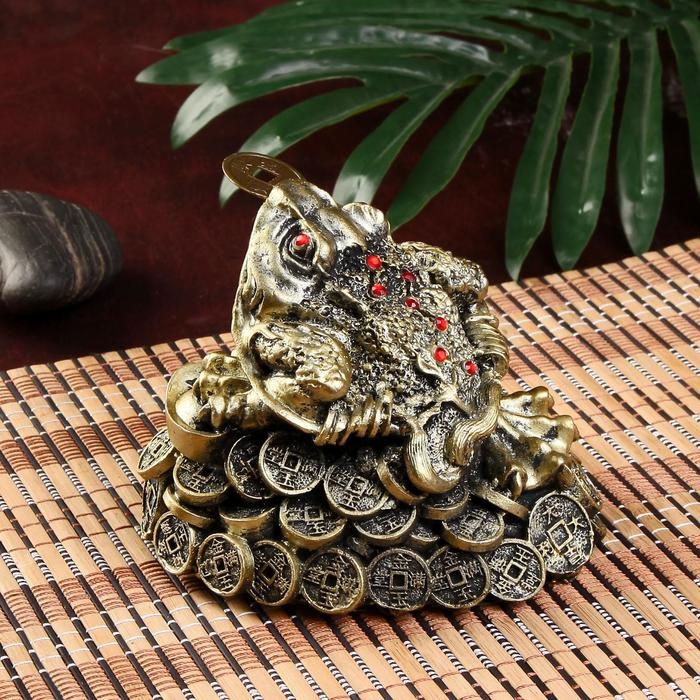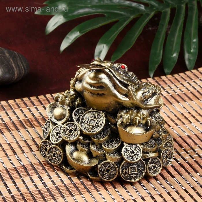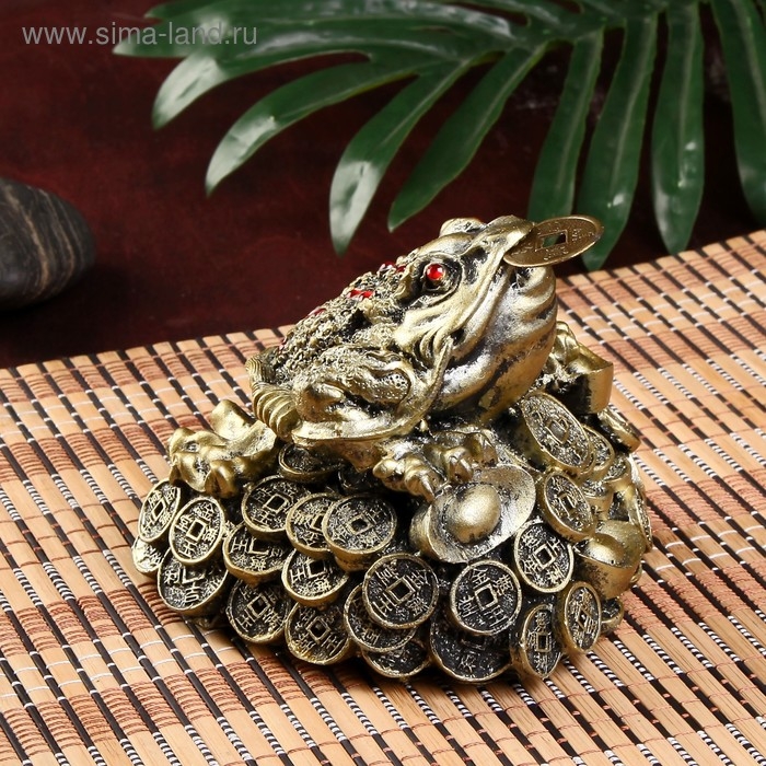 Нэцке полистоун бронза "Денежная жаба на горке китайских монет" 10х11,5х12,5 см