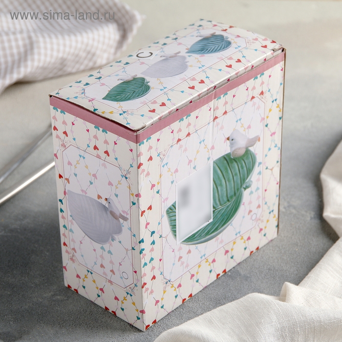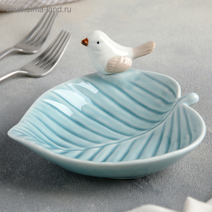 Блюдо керамическое «Птичка на листочке», 15,5×15,5 см, цвет голубой