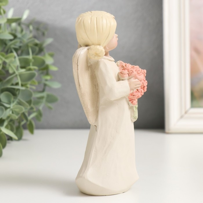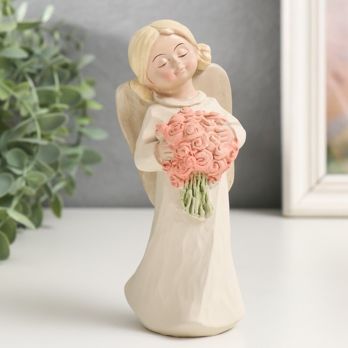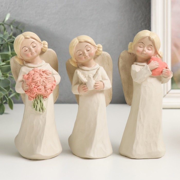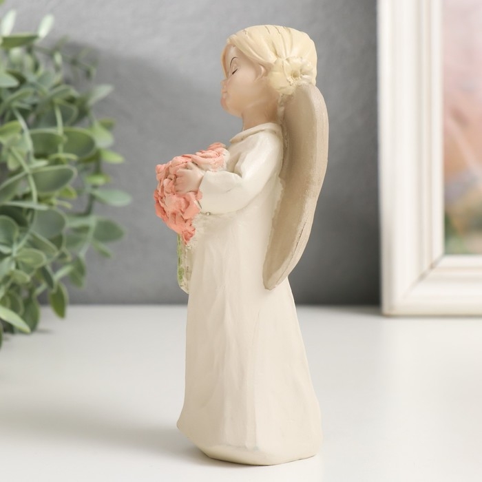 Сувенир полистоун "Ангел-девочка с двумя шишечками, с букетом/сердцем" МИКС 15х5,8х5,,4 см