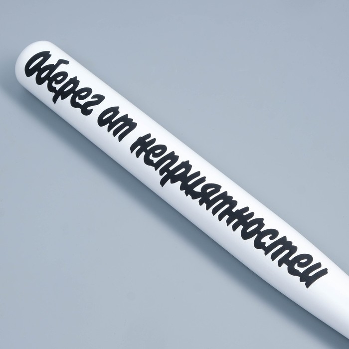 Бита лакированная "Оберег от неприятностей", белая с чёрной надписью, 65 см