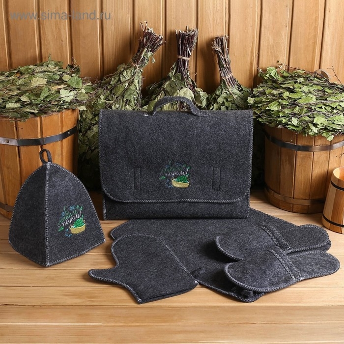 Набор банный портфель 5 предметов "С Лёгким паром, с шайкой", серый