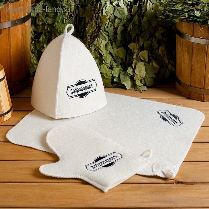 Набор банный 3 предмета "Добропаровъ", белый, в плёнке