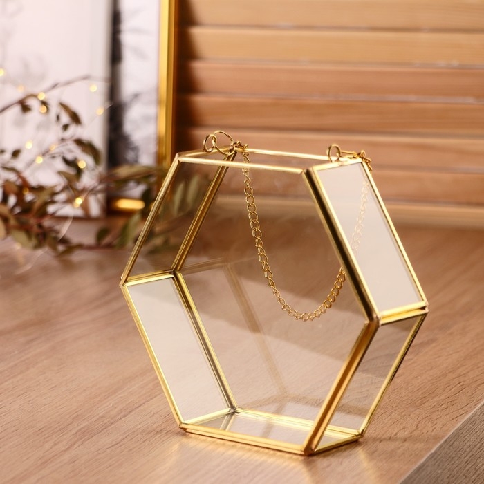 Флорариум "Каркас с цепочкой" 5х17х15 см, золото