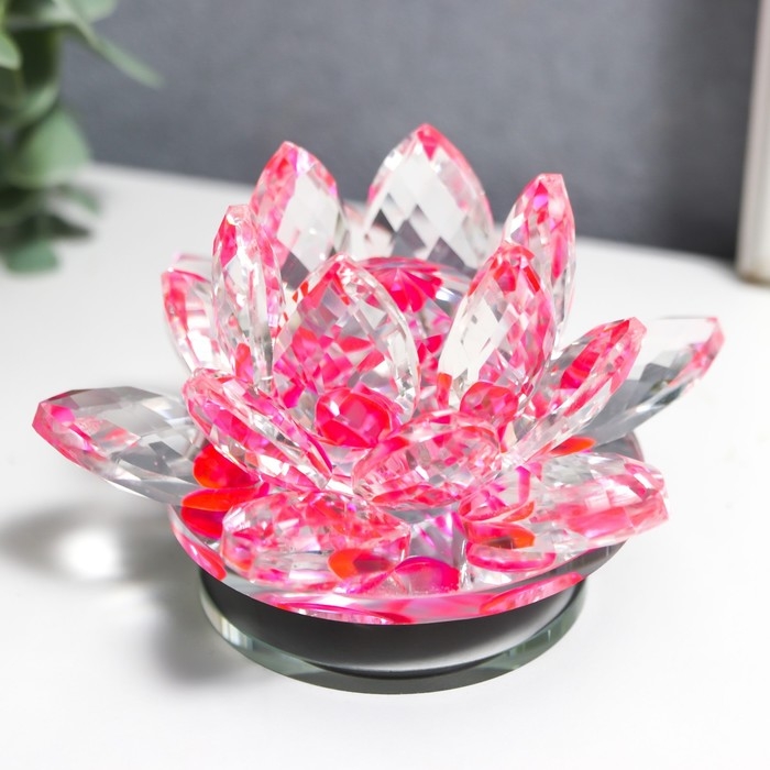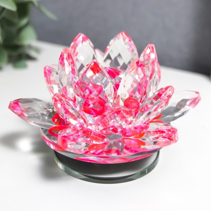 Сувенир стекло "Розовый лотос на подставке" вращается 5,5х9х9 см