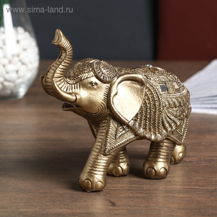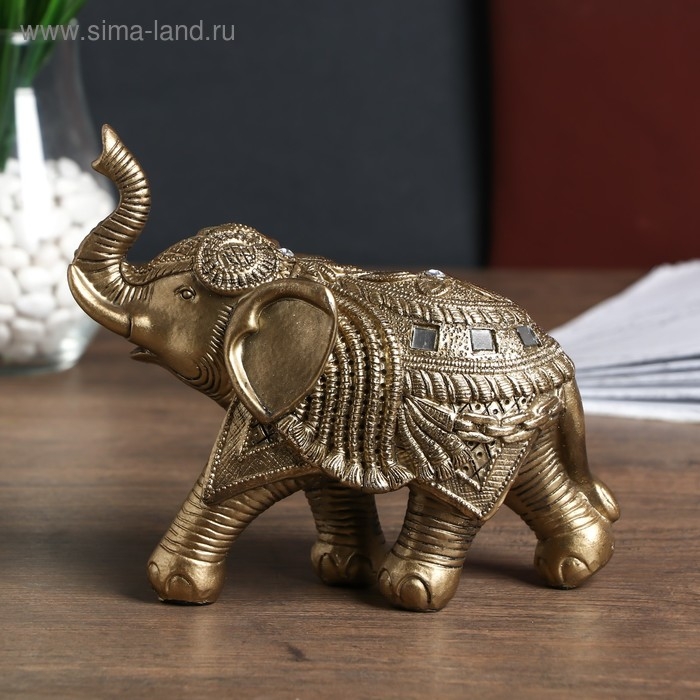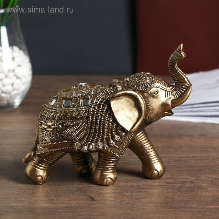Сувенир полистоун "Бронзовый слон в попоне с кисточками и зеркалами" 16х8,5х20 см