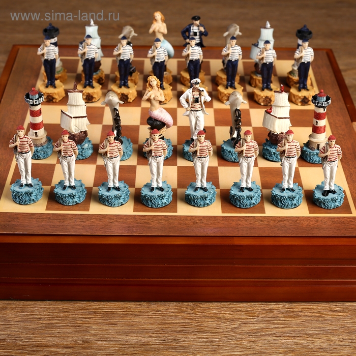 Шахматы сувенирные "Морские истории", h короля-8 см, пешки-6 см, 36 х 36 см