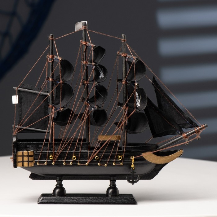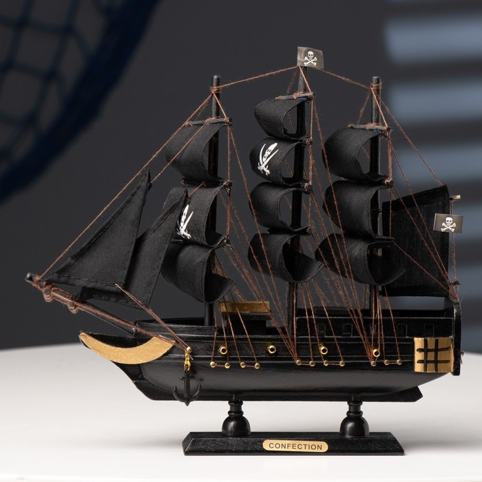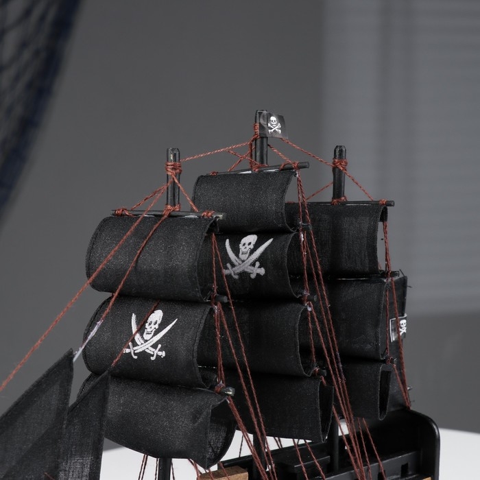 Корабль "Веселый Роджер", черные паруса, 24×6×22 см