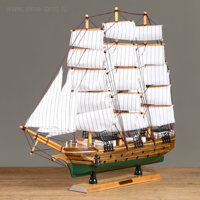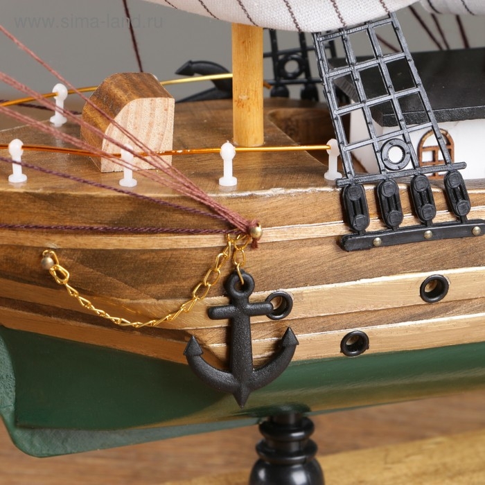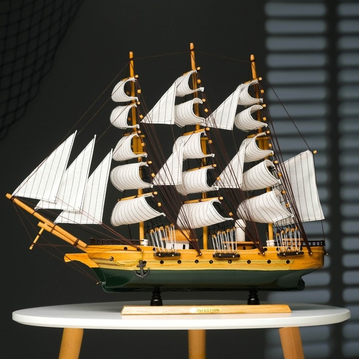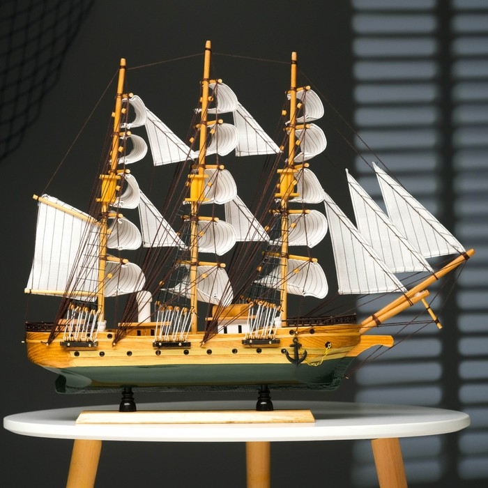 Корабль "Одиссея" с белыми парусами, зелено-коричневый корпус, 58*8*48см