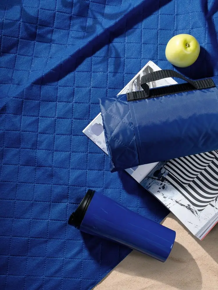 Складной двусторонний плед незаменим на пикнике, на природе или на пляже. На внутренней стороне из флиса приятно и тепло сидеть, а наружная сторона из полиэстера с водоотталкивающим покрытием не позволяет пледу намокнуть и сильно испачкаться.