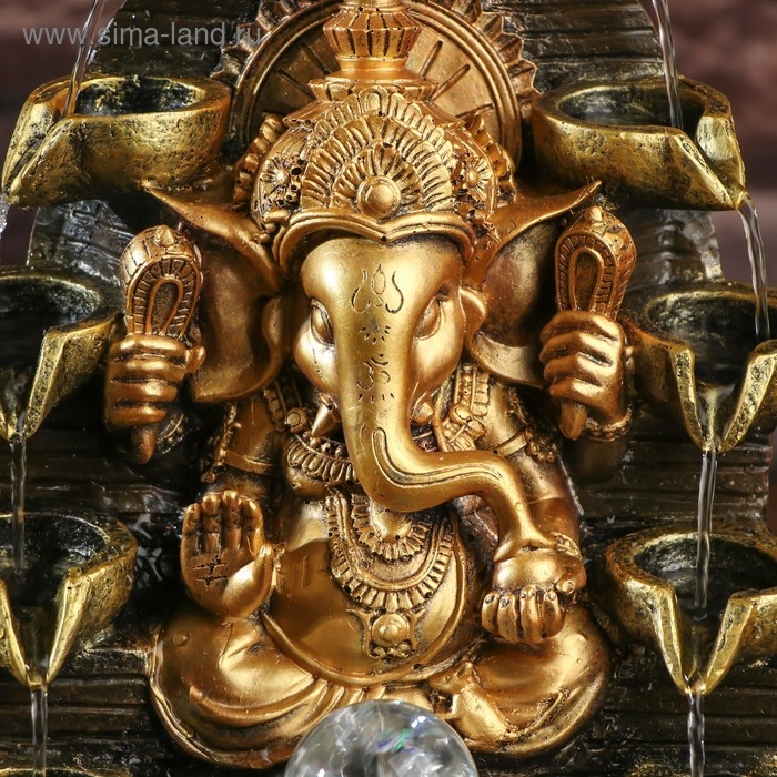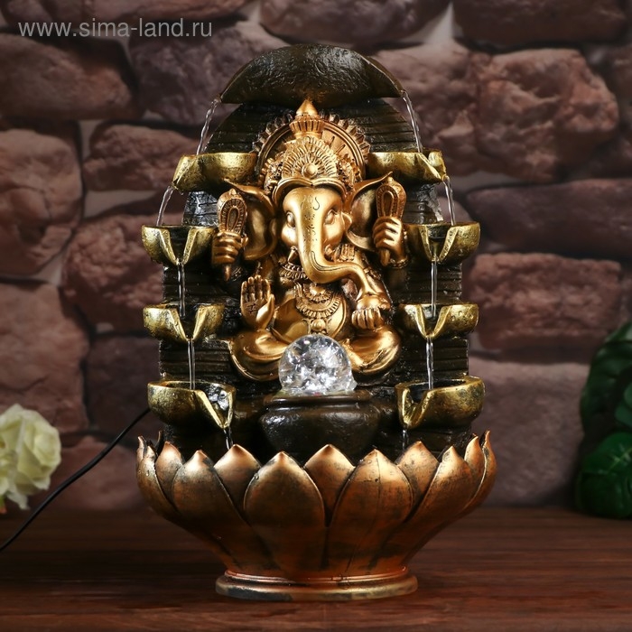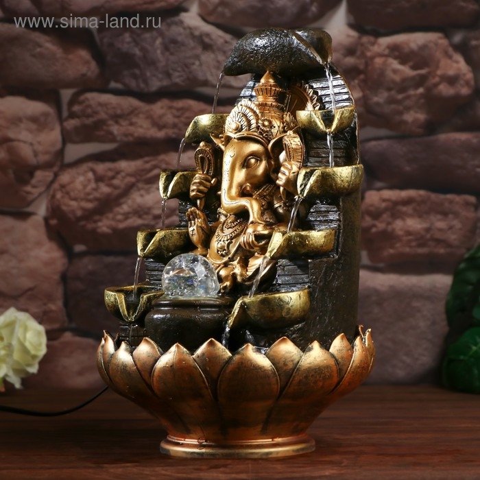 Фонтан настольный от сети, подсветка "Ганеша в храме" бронза 40х25х25 см
