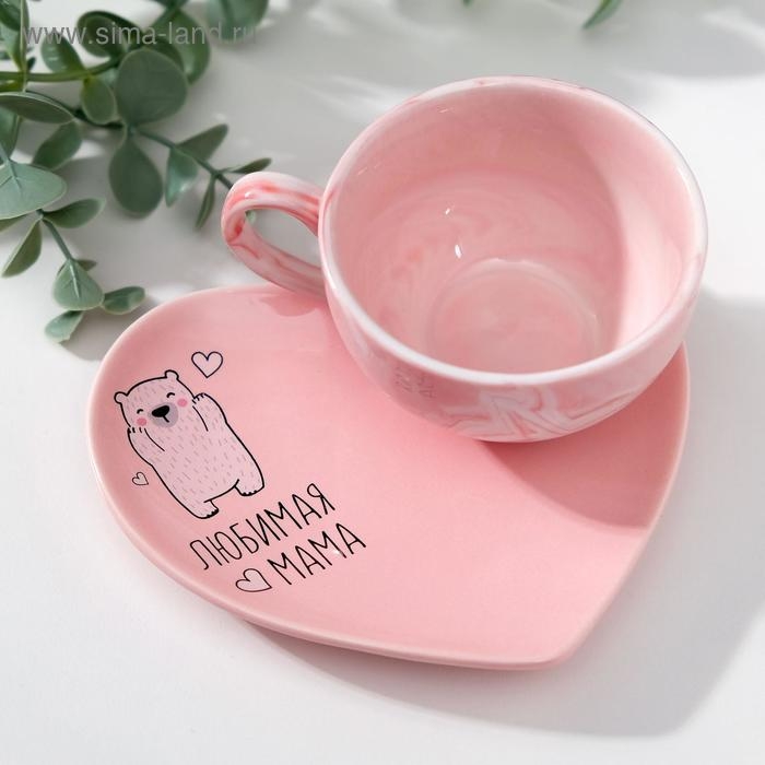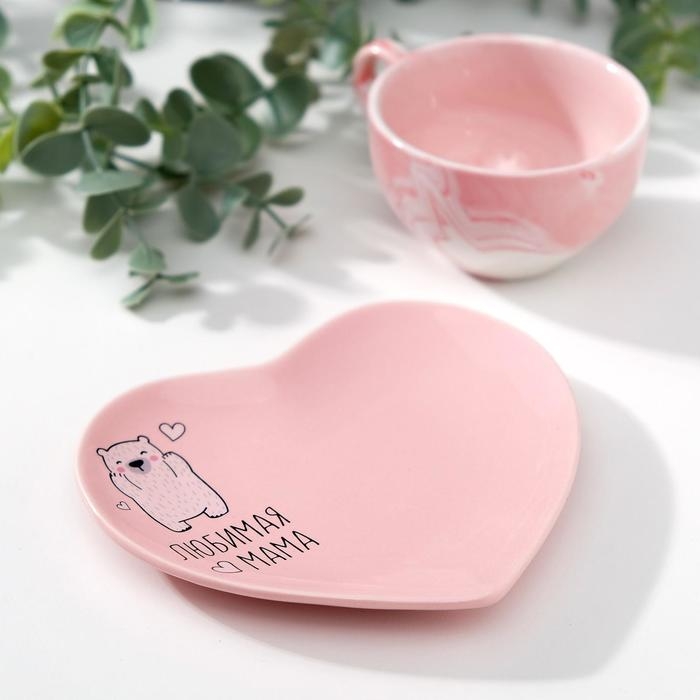 День матери. Подарочный набор керамический «Любимая мама»: кружка 120 мл, блюдце