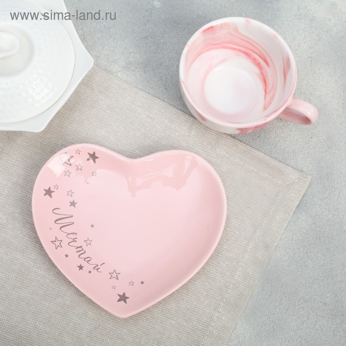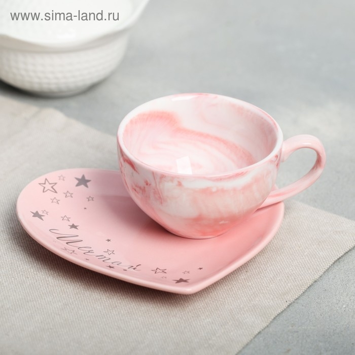 Подарочный набор керамический «Мечтай»: кружка 120 мл, блюдце, цвет розовый