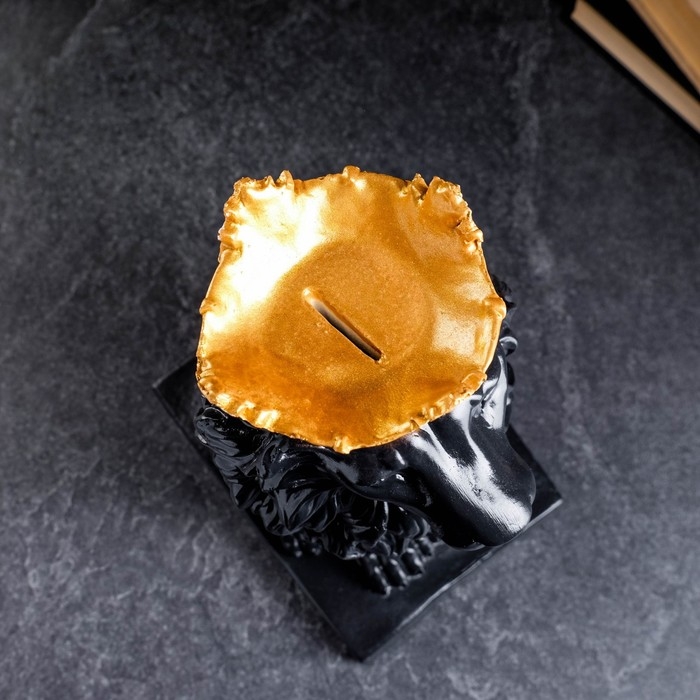 Копилка "Лев с короной" черный, с золотом, 35см