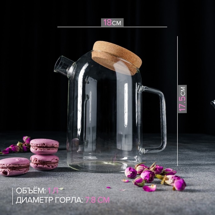 Кувшин для воды стеклянный с пробковой крышкой «Эко», 600 мл, 17×11×13,5 см