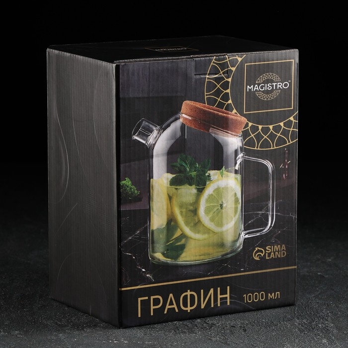 Кувшин стеклянный с пробковой крышкой Magistro «Эко», 1 л, 18×11×17,5