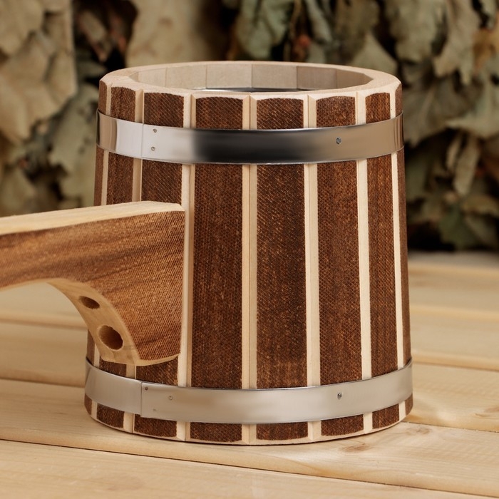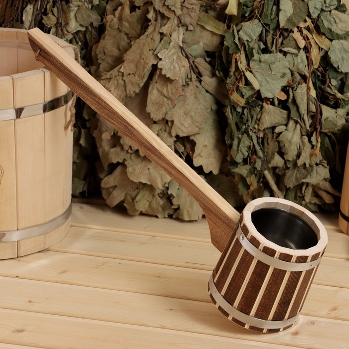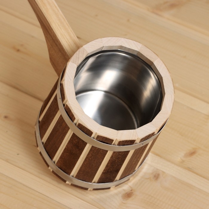 Ковш для бани из липы 0.9л, 51 см, нержавеющая вставка, с горизонтальной ручкой