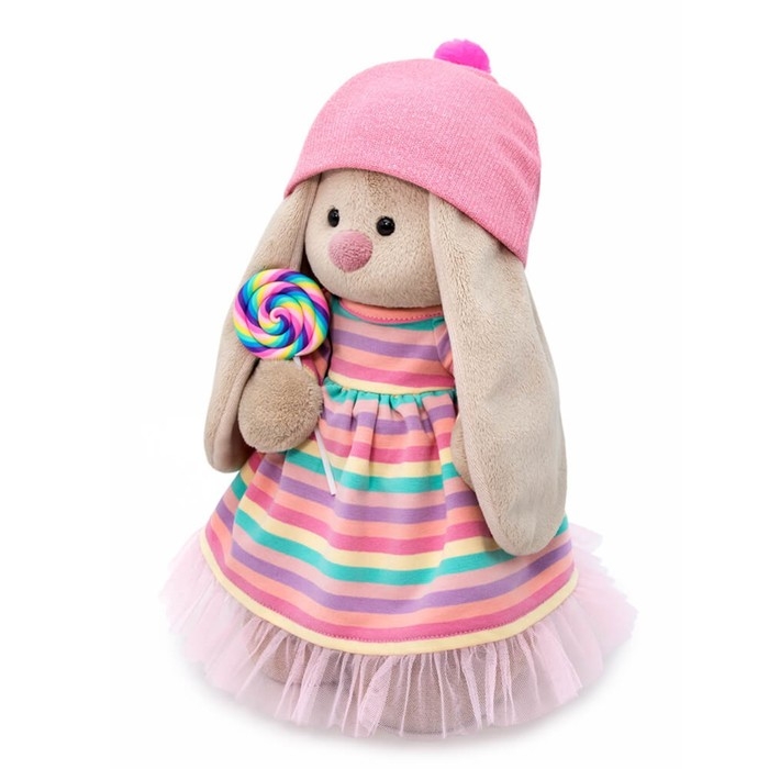 Мягкая игрушка «Зайка Ми» в полосатом платье с леденцом, 25 см