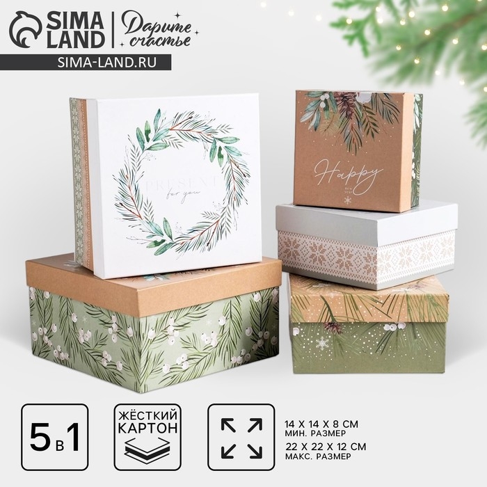 Набор подарочных коробок 5 в 1 «Зимний», 14 х 14 х 8 - 22 х 22 х 12 см, Новый год