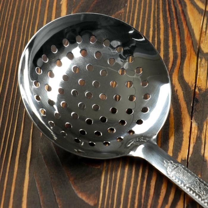 Шумовка для казана узбекская 46см, глубокая, с деревянной ручкой