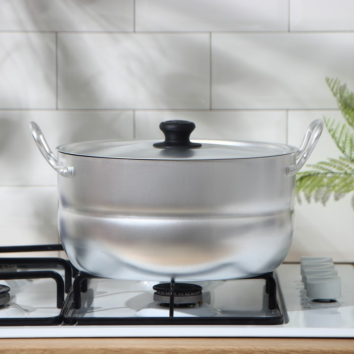 Кастрюля алюминиевая, 6 л, металлическая крышка