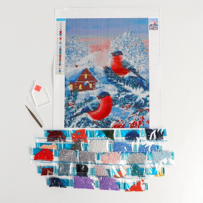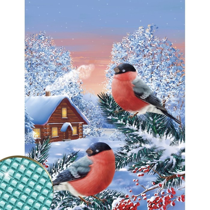 Новогодняя алмазная мозаика «Новый год. Снегири на ветке», 30 х 40 см