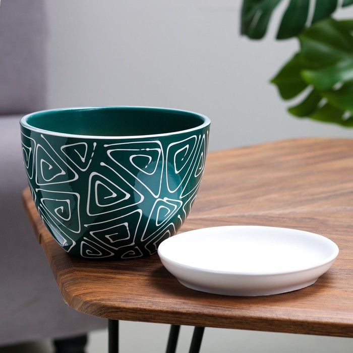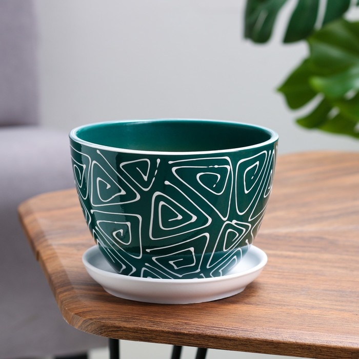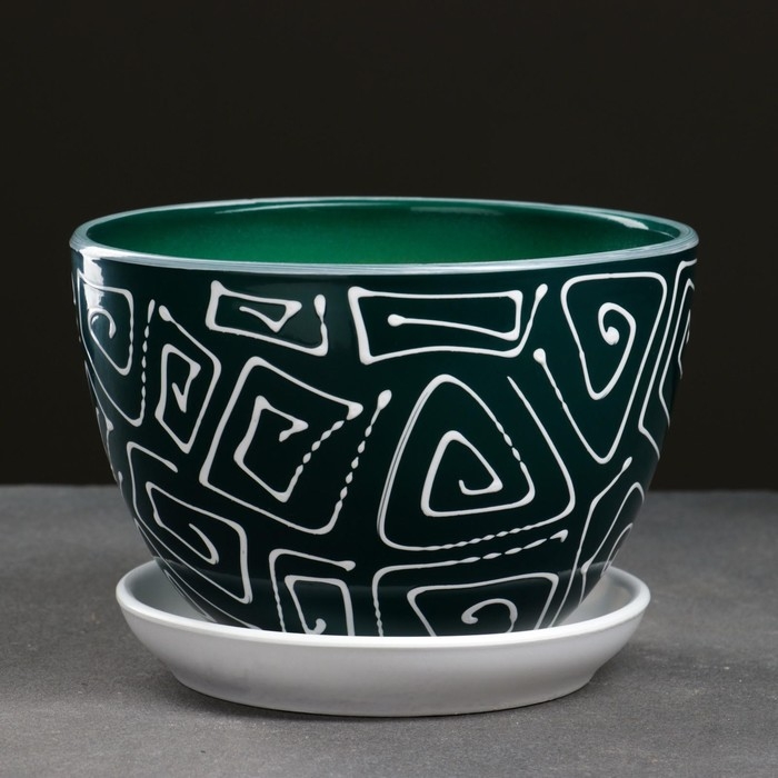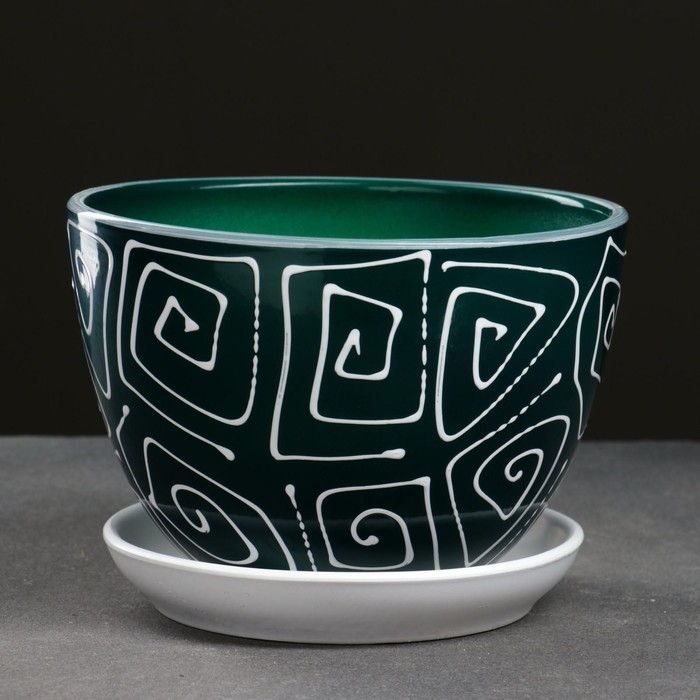 Горшок цветочный Абстракция зеленая 1,65 л