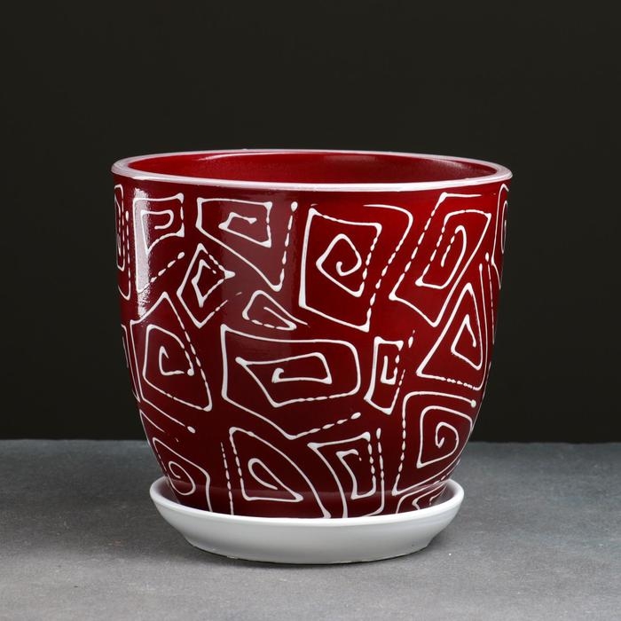 Горшок цветочный Абстракция красная 2,5 л